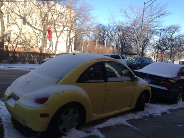 | Afterward we made our way over to the Lincoln Park Zoo. Check out how close the Rhino was! She was just playing around in the snow. So Cute! |